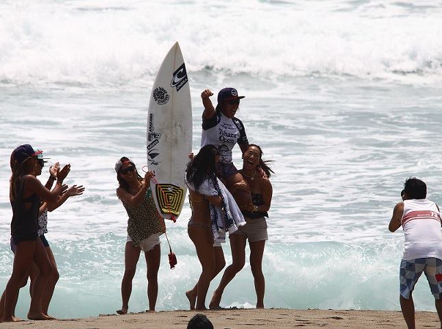 私は、肩くらいまでの波なら、波のサイズよりも波質によってボードを乗り換えています。この試合では、毎日波のサイズも質も変化が大きく、風の影響ですぐにコンディションの変わる状況。どのボードを使うかかなり悩みましたが、そこまで掘れたブレイクではなかったので、滑り出しが早く、スピードをのせやすく、回転性のいいWhipを使用しました。