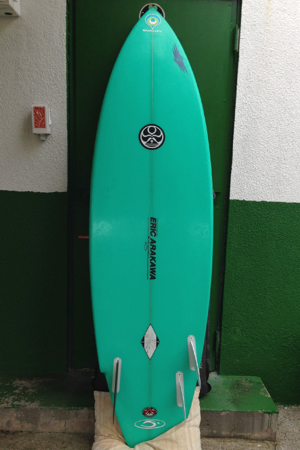 ずっと興味があったと言う Asymmetry のボードオーダーを何回もERICとメールのやりとりをした後、すべてをERICお任せでオーダーしました。「僕は、乗り手。作り手のERICには細かな口出しはしない。こんなボードが欲しい!を伝えるだけ。ERICは、色々考えてシェイプしてくれるからすべて任せられる」、と、宮川さん。ERICとのきずなの深さが伝わります。