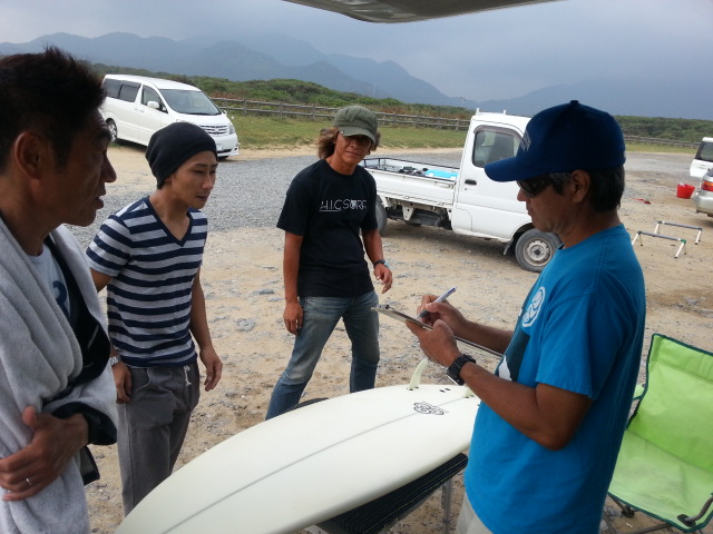 9月 18 2013 ERIC ARAKAWA DIRECT ORDER TOUR DAY 2 ランナウェーブさん二日目は、予報通りのオンショアで、みるみるうちに、ヒザ→モモ→コシ→ハラ と、サイズアップしてきました。 今日は、試乗も出来て自分好みのモデルを探しオーダーを楽しんでいました! オーダーしていただいた方に、『試乗して オーダー出来るなんて最高!それも、エリックさんに直接オーダーできるなんて!』と、嬉しい言葉を頂きました