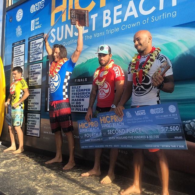 3位はディフェンディングチャンプのメイソン・ホー(左端)。4位はマウイ島のビリー・ケンパー Billy Kemper(右から2番目)